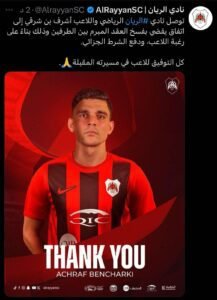 وصل الاعب المغربي أشرف بن شرقي لاعب منتخب المغرب 🇲🇦 والزمالك السابق لمطار القاهرة قادمًا من نادي الريان القطري لينضم للنادي الأهلي المصري بعد فسخ تعاقده مع الريان بالتراضي وعلمت ” الأهرام نيوز ” من مصادرها أن قيمة عقد بن شرقي مع الأهلي تبلغ مليون و ٤٠٠ الف دولار سنويًا والجدير بالذكر أن أرقام بن شرقي مع الريان القطري الموسم الماضي كانت علي النحو التالي لعب بن شرقي ٤٤ مباراة سجل ١٨ هدف وصنع ١٢ هدف وبذلك يواصل الأهلي مفاجآته بالمركاتو الشتوي بعد الأعلان عن ضم تريزيجية نجم منتخب مصر 🇪🇬 لمدة خمس سنوات وضم جراديشار ومصطفي العش من زد وأحمد رضا من بتروجيت والسؤال الأهم الذي يشغل بال الجميع هل يواصل الأهلي صفقاته المدوية قبل بطولة العالم للأندية ويضم زيزو ؟ والسؤال الأهم هل تنجح إدارة الزمالك في إنقاذ نفسها من طوفان الغضب الجماهيري بعد تقاعسها في ضم بن شرقي وتنجح في التجديد لزيزو لإنقاذ ما يمكن إنقاذه ؟ الساعات القادمة ستجيب عن هذا السؤال قبل غلق باب القيد بالمركاتو الشتوي .